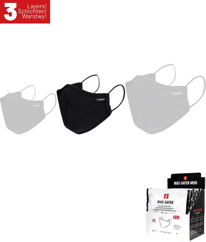 Przedstawiamy wielokrotnego użytku maseczkę higieniczną, która łączy funkcjonalność i komfort noszenia. Wykonana z trzech warstw zapewnia optymalną ochronę przed zanieczyszczeniami. Część twarzowa maseczki została uszyta z wysokiej jakości bawełny o gramaturze 120 g/m2, co gwarantuje miękkość i przewiewność. Elastyczne gumki oraz oblamówka wykonane z mieszanki elastanu i materiału syntetycznego zapewniają wygodę i doskonałe dopasowanie do kształtu twarzy. Maseczka jest łatwa w zakładaniu dzięki gumkom zamocowanym na bokach. Każda z nich jest pakowana w eleganckie pudełko, idealne do prezentacji w punktach sprzedaży. Opakowanie zawiera 20 sztuk maseczek. Uwaga, maseczka nie jest wyrobem medycznym ani środkiem ochrony układu oddechowego.