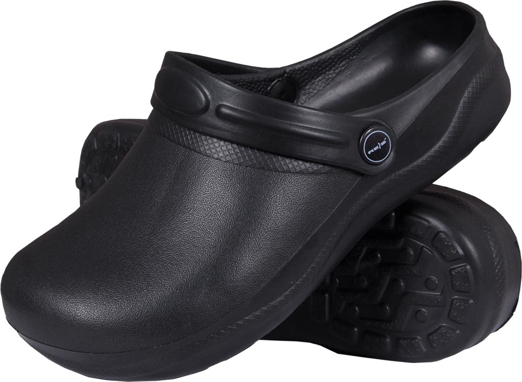 EVA-Labor-Clogs mit sicherer, profilierter Sohle und doppelfunktionellem Fersenriemen. Ideal für Labore und Apotheken.