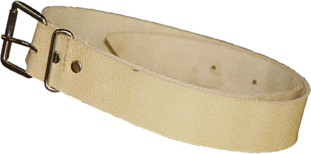 Robuster Tragegurt aus russischem Schweinsleder, 116 cm lang und 4 cm breit, mit Metallschnalle und -schlaufe.