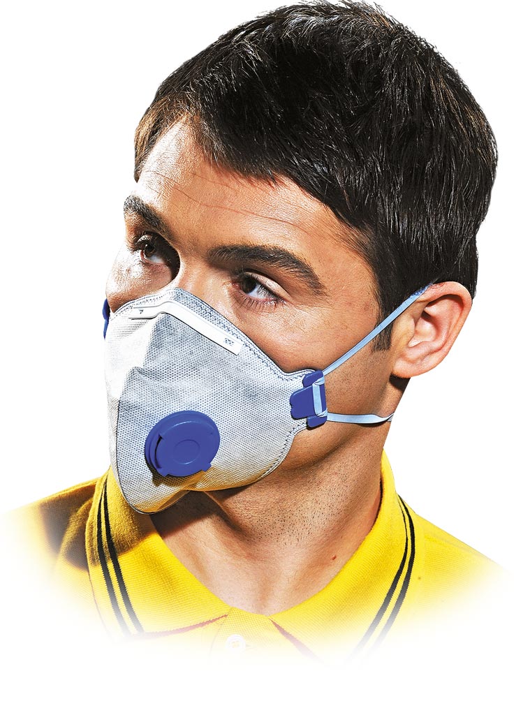 FFP2 Halbmaske mit seitlichem Ventil, optimal für Holz- und Metallverarbeitung. Schutz gegen Staub, Ölnebel und mehr.