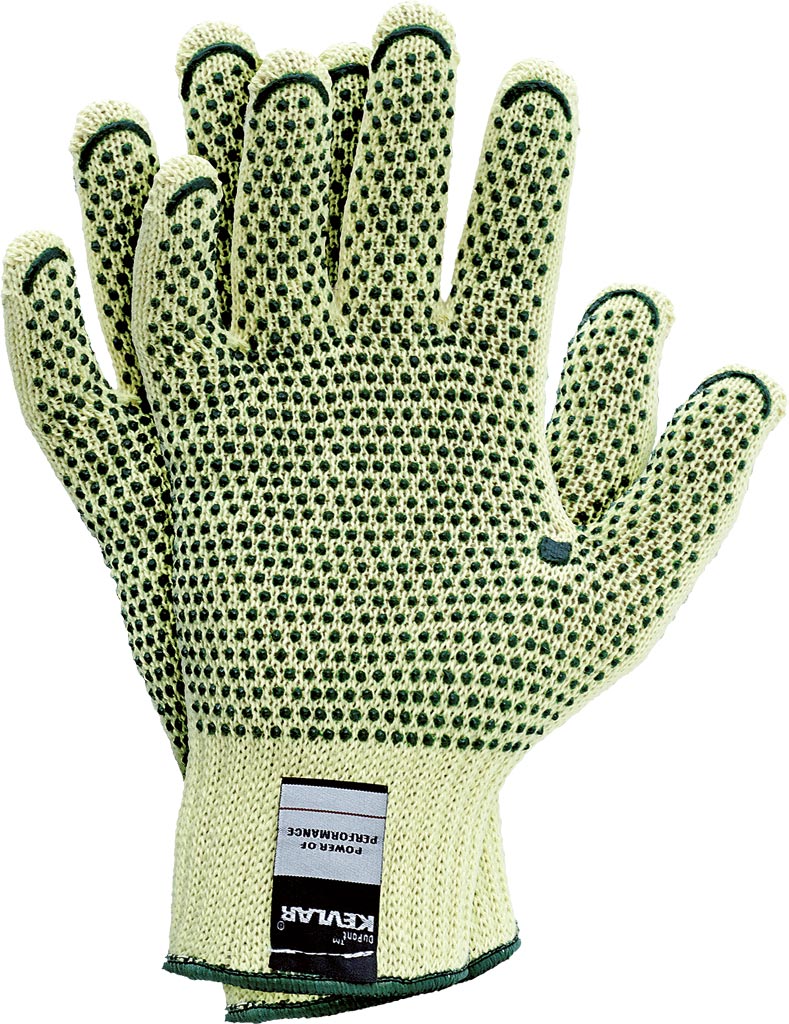Diese hochwertigen Arbeitshandschuhe sind aus para-aramidem Kevlar®-Gewebe gefertigt und bieten durch ihre spezielle Verarbeitung optimalen Schutz. Die Innenseite der Handschuhe ist mit einer PVC-Tropfenbeschichtung versehen, die eine ausgezeichnete Griffigkeit und Handhabung von Objekten ermöglicht. Die Handschuhe sind und besitzen einen elastischen Rippbund, der für einen sicheren Sitz sorgt.