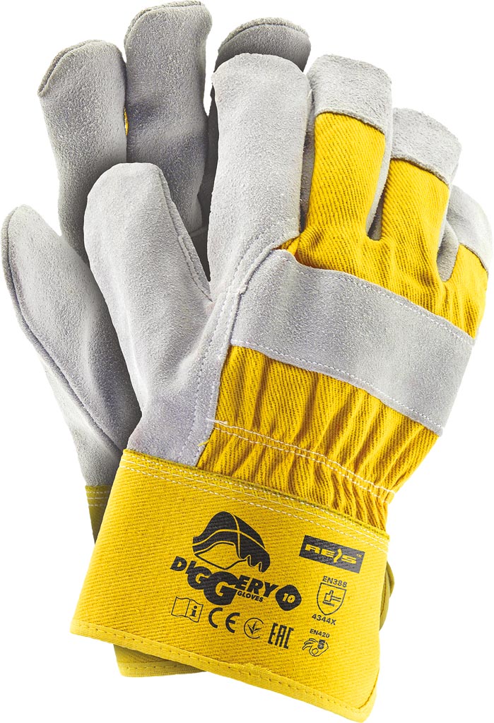 Robuste Schutzhandschuhe aus Rindsleder, verstärkt für erhöhte Haltbarkeit und Komfort. Ideal für Bau und Industrie. EN388 und EN420 zertifiziert.