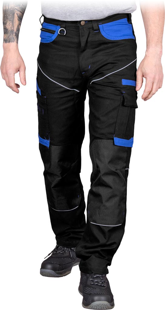 Robuste Schutzhosen mit Stretch-Einsätzen, multifunktionalen Taschen und reflektierenden Elementen für erhöhte Sicherheit.