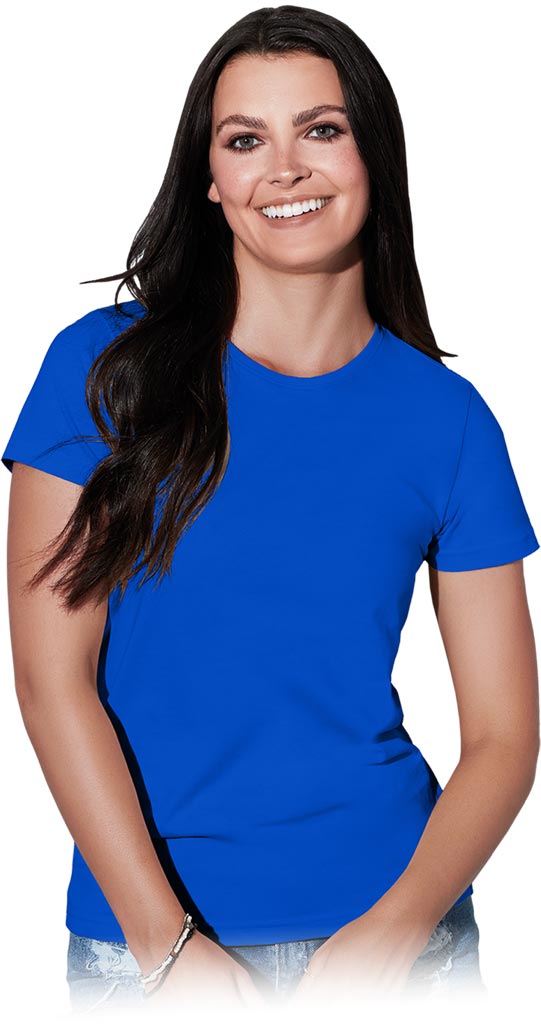 Hochwertiges Damen T-Shirt aus 100% ringgesponnener Baumwolle, 155 g/m², mit Seitennähten und verstärkendem Nackenband.