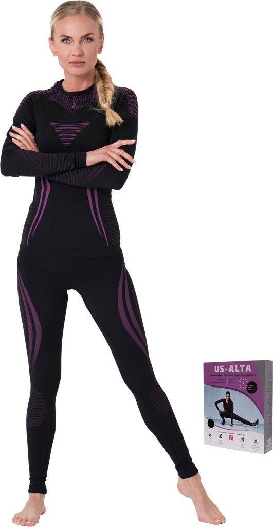 High-performance women's thermoactive underwear set, including a long-sleeve shirt and leggings, made from a stretchy blend for comfort and warmth.