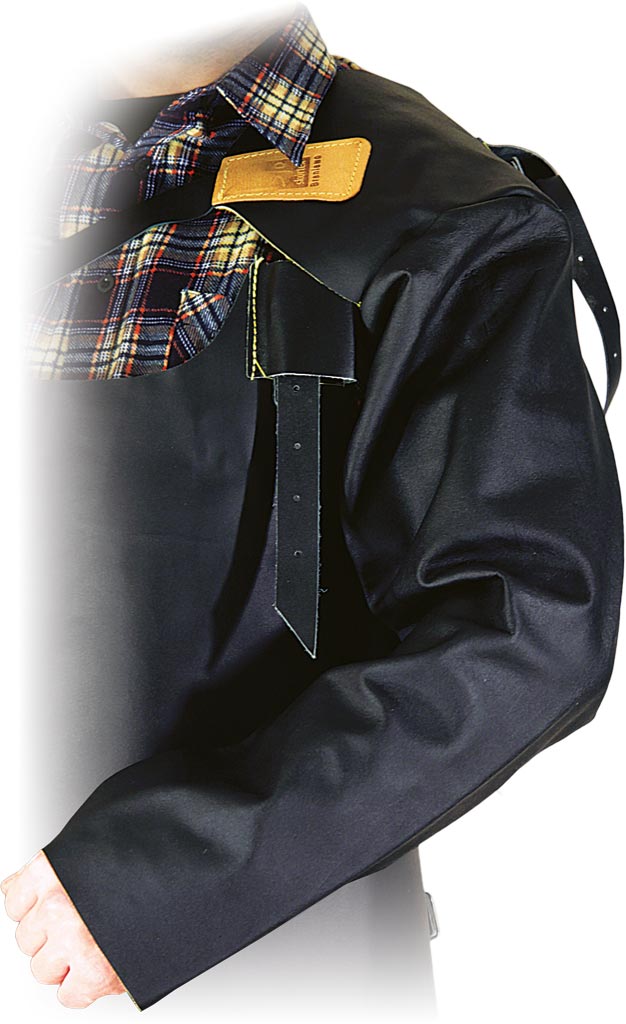 The robust upper buckle fastening and convenient button-up lower part ensure a secure and adjustable fit. An additional shoulder protection, sewn at the top, extends the coverage, making it ideal for welders working in both open and enclosed spaces. This product meets stringent safety standards EN11611 and EN13688, making it an essential piece of equipment for any welding professional.