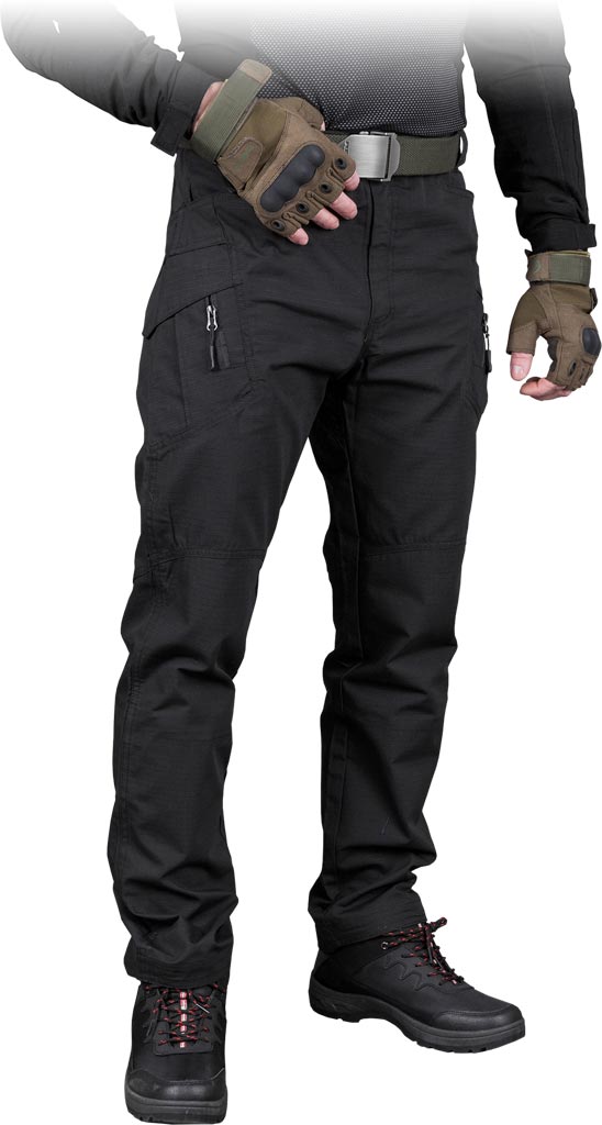 Durable tactical pants with multiple pockets, reinforced knees, and an elastic waist for enhanced mobility. Perfect for outdoor and security tasks.
