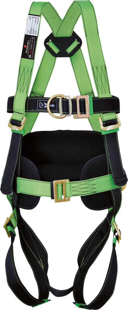 Equipped with a positioning belt and belts for sitting, the harness enhances user stability during prolonged tasks. The robust polyester webbing, with a width of 44±1 mm, and high-tensile polyamide thread seams offer increased resistance to wear and tear. This product meets the stringent requirements of EN361 and EN358 standards, confirming its high quality and reliability.