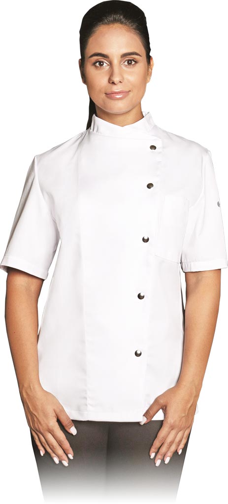 Odkryj wygodę i funkcjonalność z naszą damską bluzą kucharską, idealną dla profesjonalistek. Wykonana z mieszanki 65% poliestru i 35% bawełny, bluza ta łączy trwałość z komfortem noszenia. Dzięki gramaturze 215 g/m2 jest wytrzymała, a jednocześnie lekka. Bluza zapinana jest na praktyczne zatrzaski, co ułatwia szybkie ubieranie się oraz zdejmowanie. Dodatkowo, wyposażona jest w kieszonkę na klatce piersiowej z lewej strony, co pozwala na przechowywanie drobnych przedmiotów. Kołnierz w formie stójki zapewnia elegancki wygląd i ochronę. Bluza jest łatwa w pielęgnacji – można ją prać w temperaturze do 95°C, prasować, czyścić chemicznie oraz suszyć w suszarce bębnowej. Idealna dla kobiet ceniących sobie profesjonalizm i komfort podczas pracy.