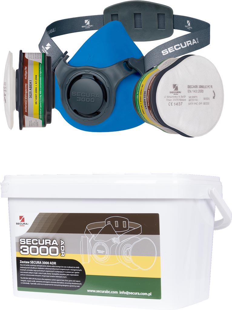 Przedstawiamy MASKĘ OCHRONNĄ SECURA 3000 ADR, którą zaprojektowano specjalnie dla profesjonalnych kierowców. Zestaw zawiera silikonową półmaskę SECURA 3000, dwa pochłaniacze gazów 3025 ABEK1 i dwa filtry przeciwpyłowe SECAIR 3000.02 P2 R. Ta maska skutecznie chroni układ oddechowy przed szkodliwymi pyłami i chemikaliami, oferując ochronę do 10 x NDS.