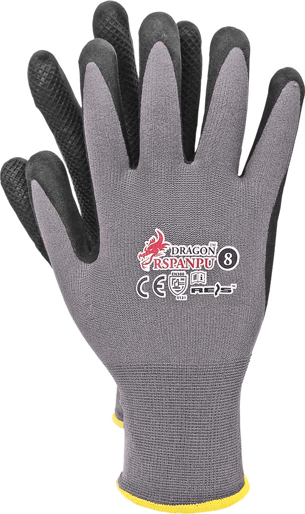 Rękawice ochronne marki REIS, wykonane z połączenia nylonu i oddychającego materiału spandex, to idealne rozwiązanie dla profesjonalistów. Powlekane innowacyjną, wodną powłoką PU na części chwytnej oraz wyposażone w specjalne mini wgłębienia, zapewniają niezrównaną chwytność oraz długotrwałą wytrzymałość. Zakończone komfortowym ściągaczem, gwarantują doskonałą manualność i czucie trzymanego przedmiotu, co jest kluczowe w pracach mechanicznych. Odporność na rozciąganie oraz zgodność z normami EN388 i EN420 czyni je niezastąpionymi w każdych warunkach.