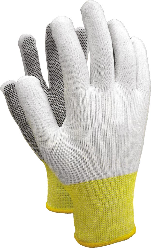 Wygoda i ochrona w każdej sytuacji! Nasze rękawice robocze wykonane są z wysokiej jakości dzianiny poliestrowej (ścieg 13), zapewniającej elastyczność i doskonałe dopasowanie do kształtu dłoni. Model ten charakteryzuje się jednostronnym mikronakropieniem z PCV na części chwytnej, co zwiększa trwałość oraz poprawia właściwości uchwytne, niezbędne podczas pracy z różnymi materiałami.