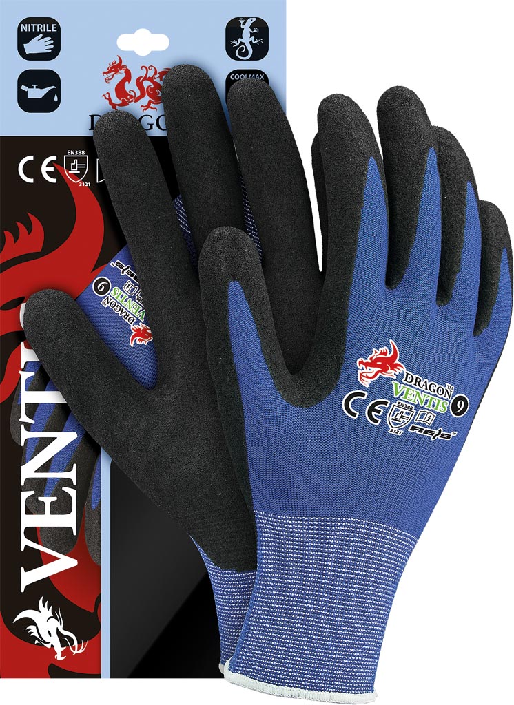 Rękawice spełniają normy EN388 (poziomy odporności: 3 1 2 1) oraz EN420, co świadczy o ich wysokiej jakości i bezpieczeństwie użytkowania.