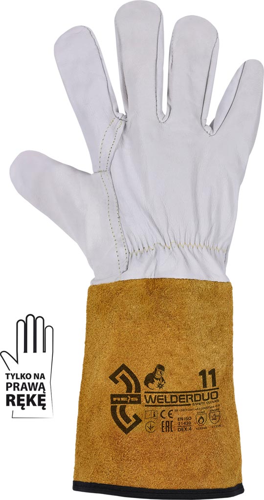 Przedstawiamy profesjonalne rękawice spawalnicze przeznaczone wyłącznie na prawą rękę, które łączą w sobie zaawansowaną ochronę i wyjątkową trwałość. Wykonane z połączenia skóry bydlęcej dwoinowej w kolorze miodowym oraz skóry koźcej licowej, te rękawice są nie tylko estetyczne, ale również niezwykle funkcjonalne. Długość 35 cm zapewnia optymalne pokrycie i ochronę przedniego przedramienia.