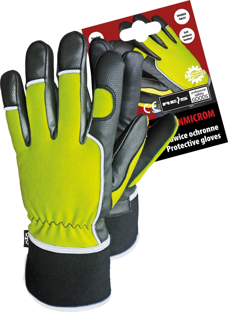 La partie supérieure des gants est réalisée en stretch de couleur vive avec des éléments réfléchissants pour améliorer la visibilité dans les conditions de faible lumière. Leur paume, en cuir Microthan robuste, garantit une excellente durabilité. Grâce à un intérieur isolé, vos mains restent au chaud, tandis qu'un poignet élastique assure un ajustement parfait. Le manchette renforcée augmente la protection et le confort. Disponible en lots de 12, chaque paire inclut une étiquette, parfaite pour les présentations produits. Le poids de chaque paire est de 0.1500 kg, et le poids d'un carton de 60 paires est de 9.0000 kg pour un volume de 0.04 m³.