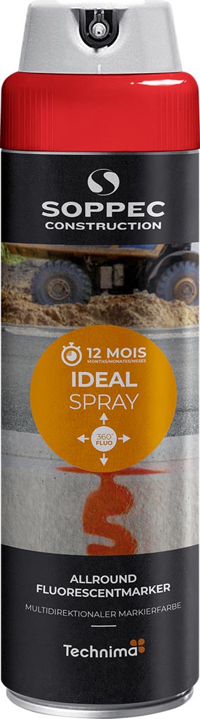 Fluorescencyjna farba do znakowania SOPPEC, wielokierunkowa, szybkoschnąca, odporna na warunki atmosferyczne, trwałość do 6 miesięcy.