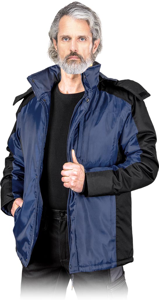 Kurtka jest zapinana na suwak z dodatkowym zapięciem na napy, posiada kołnierz-stójkę oraz wyjmowany kaptur z rzepem dla lepszej ochrony głowy. Dwie zewnętrzne kieszenie oraz jedna na klatce piersiowej, wszystkie zapinane na suwak, zapewniają bezpieczne przechowywanie drobiazgów, a wewnętrzna kieszeń na rzep dodaje funkcjonalności. Rękawy zakończone są ściągaczem dla lepszego dopasowania i ochrony przed zimnem.