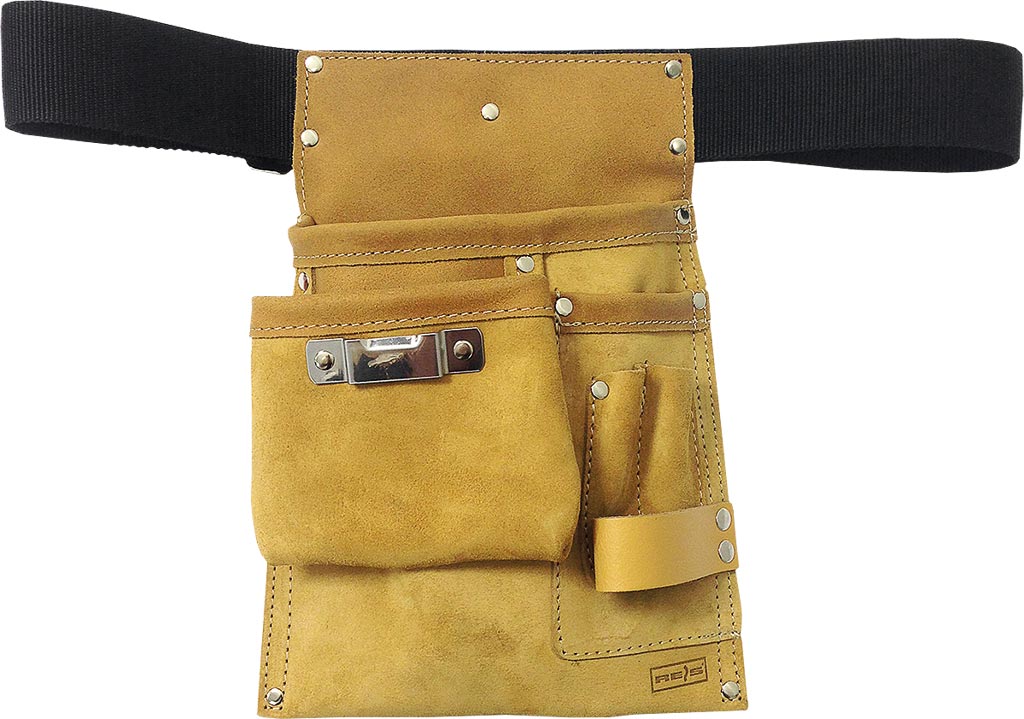 Skórzany pas montażowy REIS z pięcioma kieszeniami na narzędzia. Wytrzymała konstrukcja z regulacją.