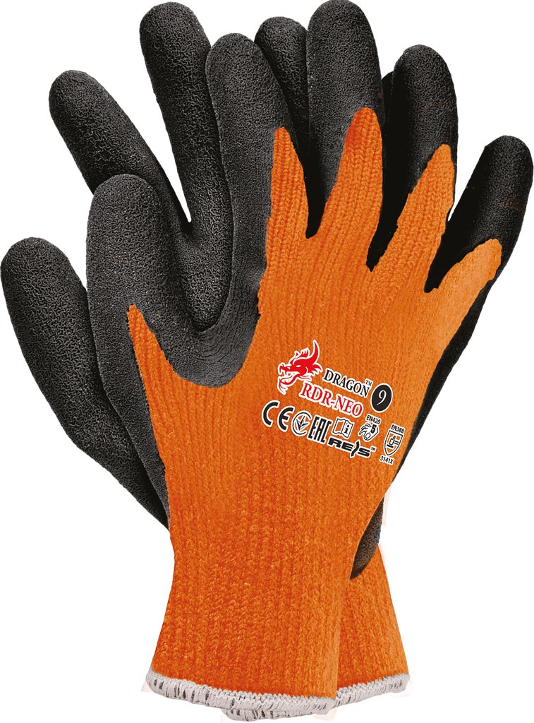 Wytrzymałe rękawice robocze, powlekane lateksem, fluorescencyjne. Idealne dla branży budowlanej i transportowej. Normy EN388 i EN420.