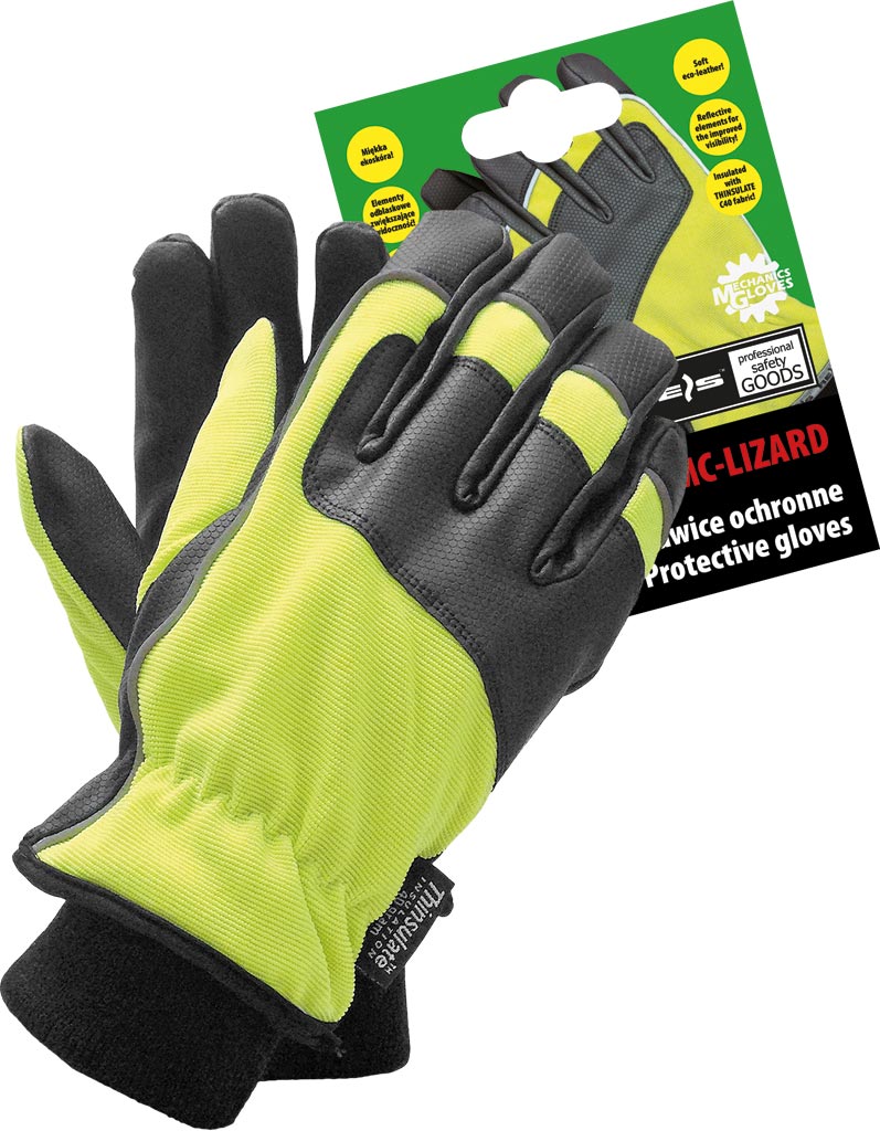 Ocieplane rękawice ochronne z fluorescencyjnym spandexem i odblaskową lamówką. Idealne dla kierowców i drogowców.