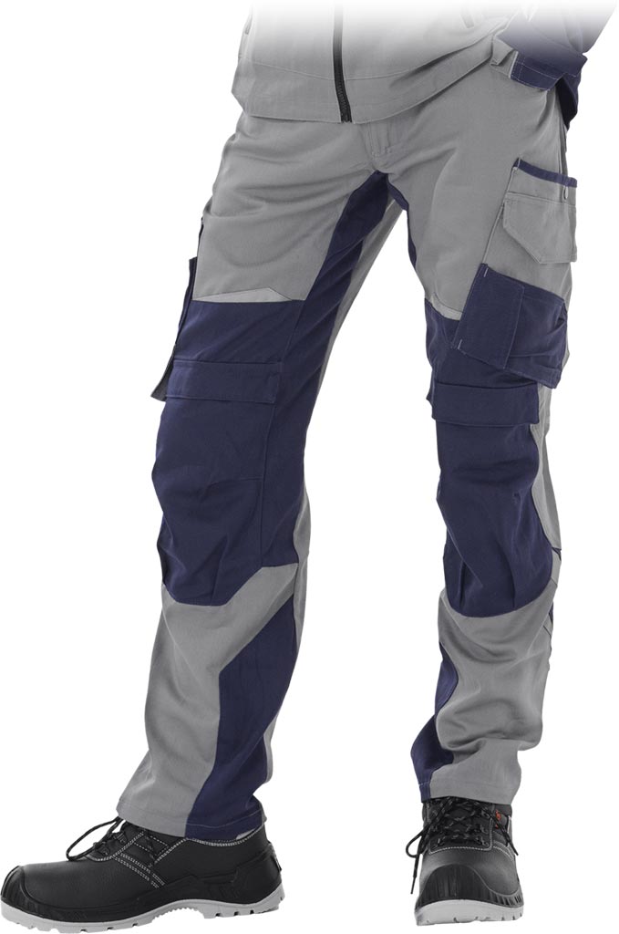 Spodnie robocze POND z odblaskami, kieszeniami na nakolanniki, wykonane z bawełny. Idealne na upalne dni, zapewniające komfort i bezpieczeństwo.