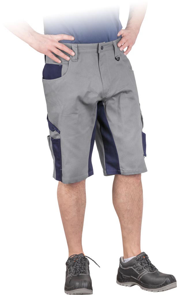 Krótkie spodnie ochronne POND, idealne na ciepłe dni. 100% bawełna, mnóstwo funkcjonalnych kieszeni, klips na klucze.
