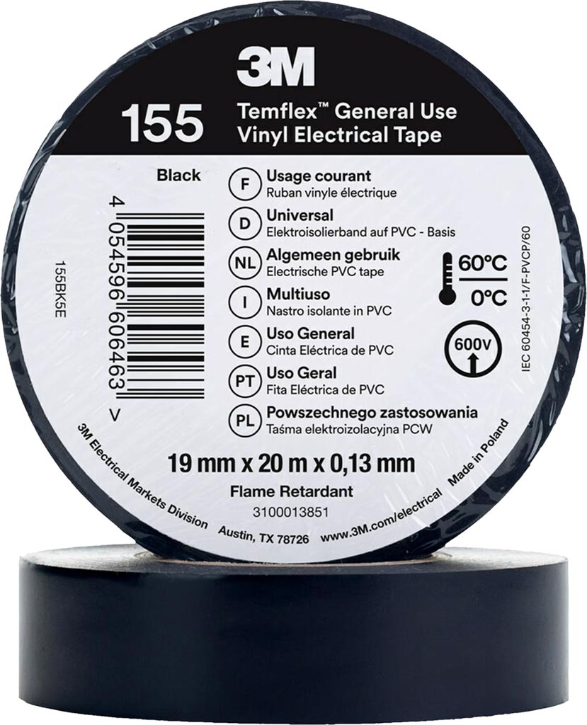 3M Temflex 155 - taśma izolacyjna o dł. 20 m, szer. 19 mm, odporna na warunki atmosferyczne.